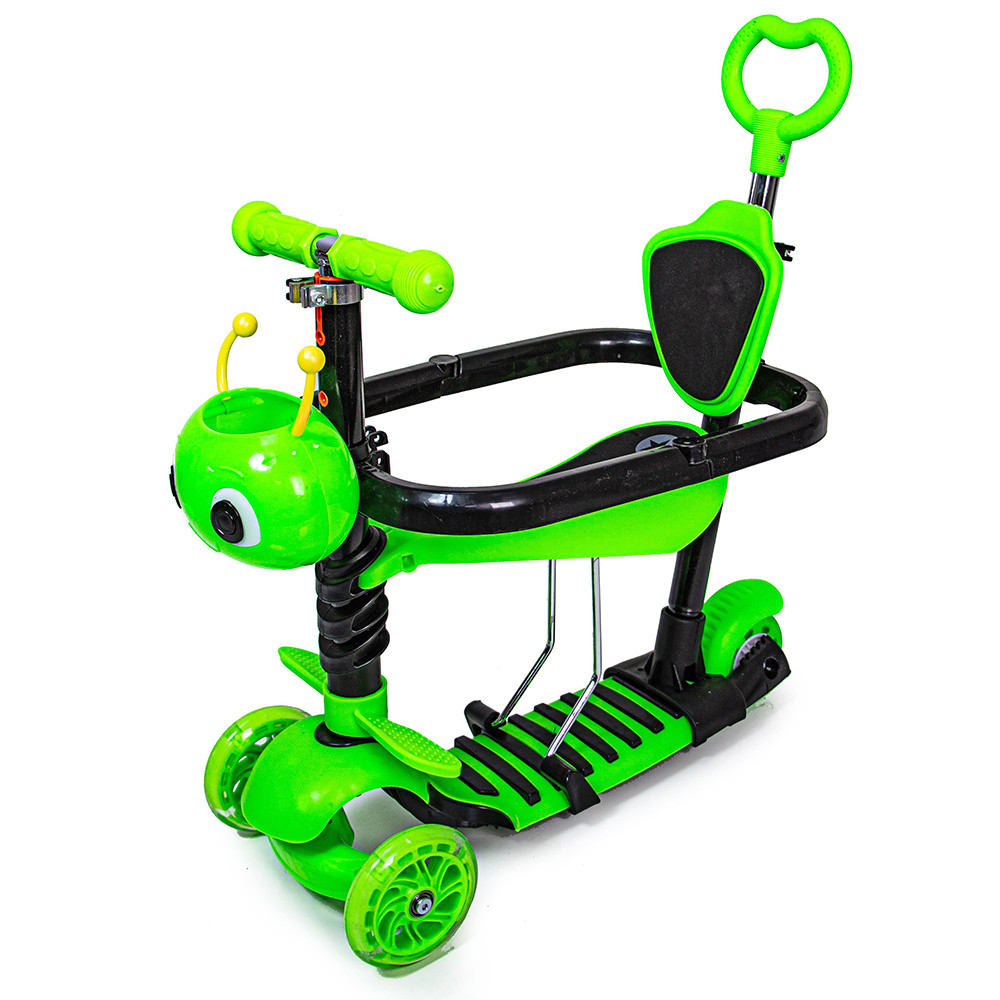 Самокат 5 в 1 із захисним бампером, знімним сидінням та батьківською ручкою, Зелений