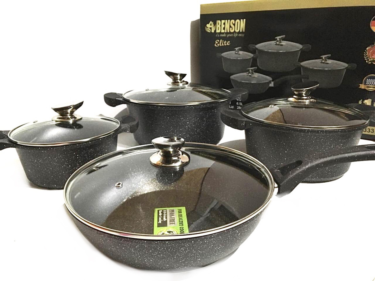 Набір каструль Benson BN-333 8 пр. з антипригарним покриттям + сковорода